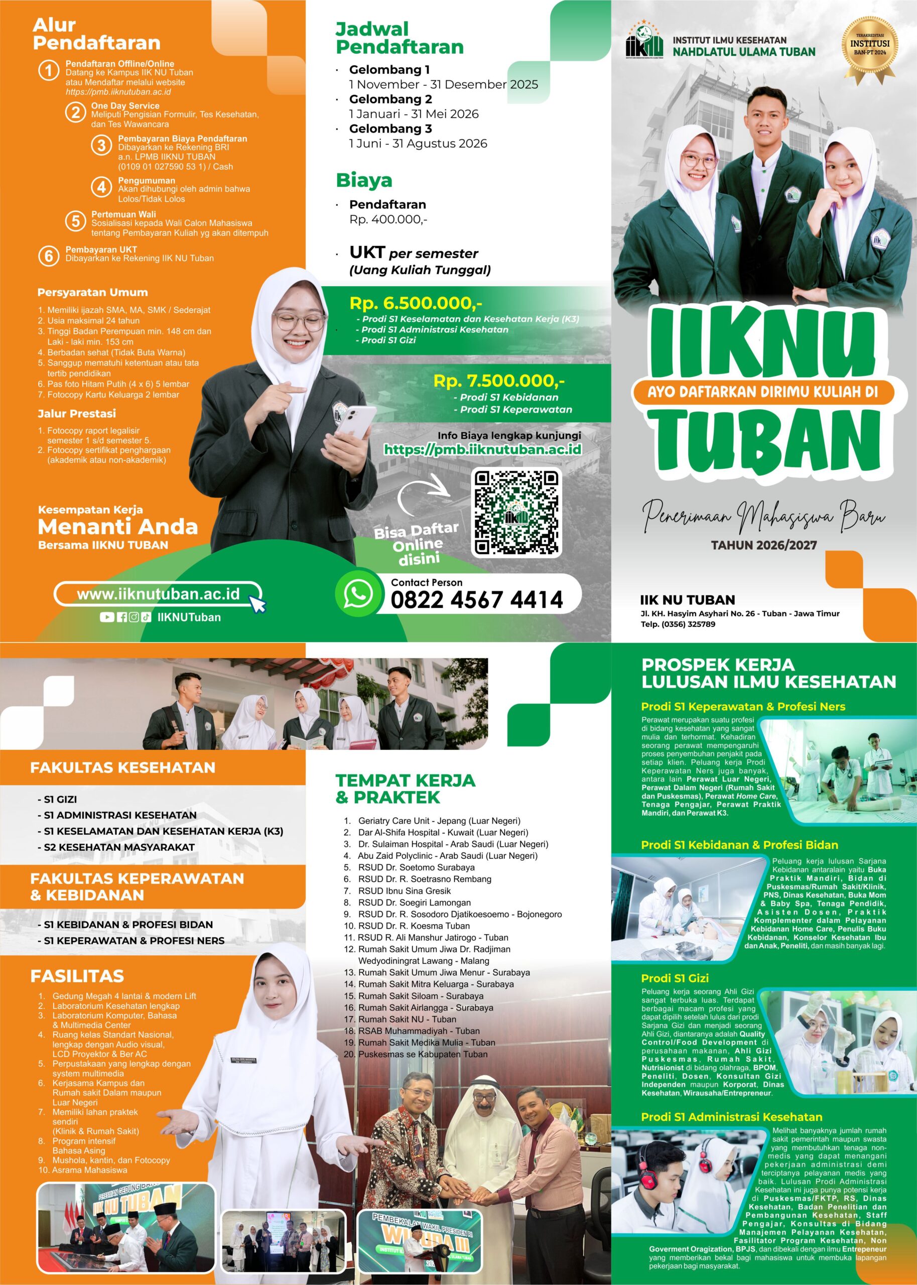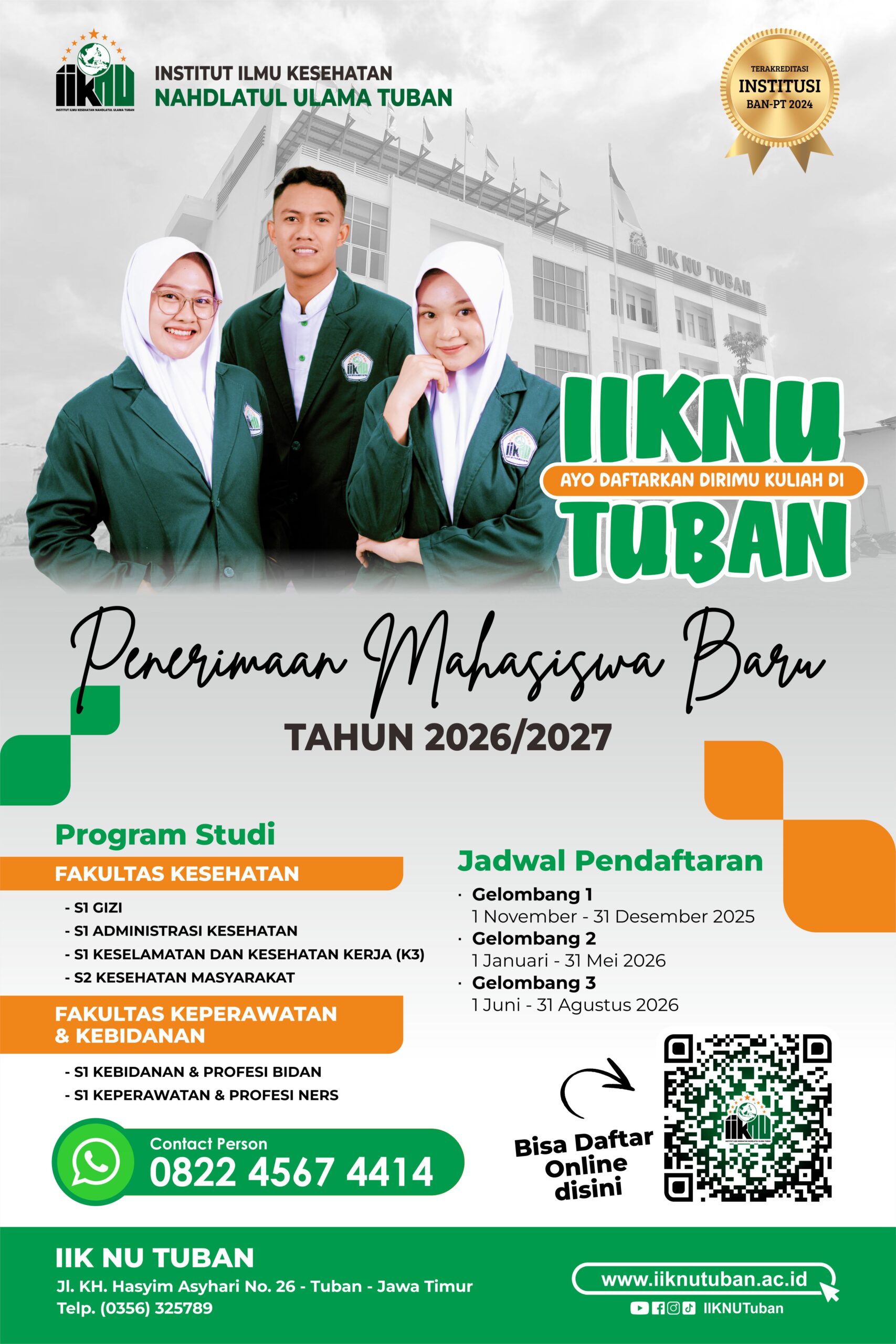 Silahkan Lihat / Download Brosur Pendaftaran Mahasiswa IIK NU Tuban Tahun Akademik 2026-2027.
